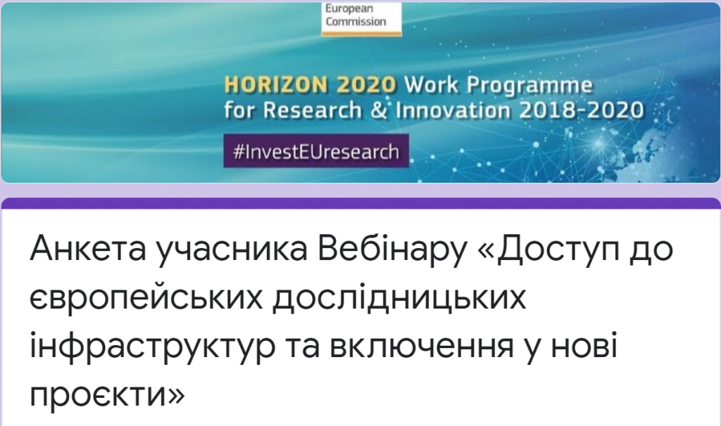 19 червня 2020 року відбудеться вебінар «Доступ до європейських дослідницьких інфраструктур та включення у нові проєкти».